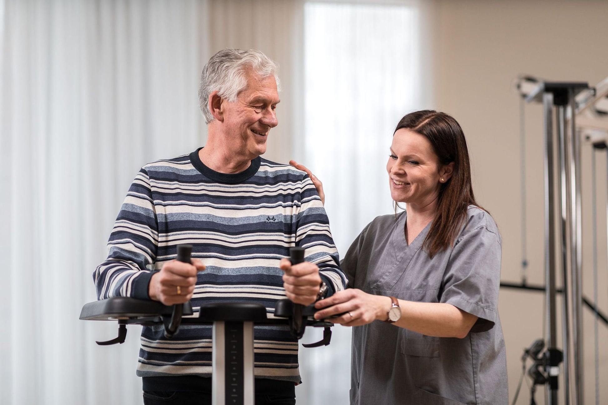 Der TOPRO Taurus H Premium wurde speziell entwickelt, um Patienten in jeder Phase der Rehabilitation optimal zu begleiten. Mit seinen vielseitigen Einstellmöglichkeiten lässt sich der Gehwagen perfekt an die Bedürfnisse des Nutzers anpassen: Die Unterarmauflagen können stufenlos in Breite und Höhe verstellt werden, während die integrierte Gasdruckfeder die Höhenanpassung erleichtert und zusätzlich als praktische Setz- und Aufstehhilfe dient.