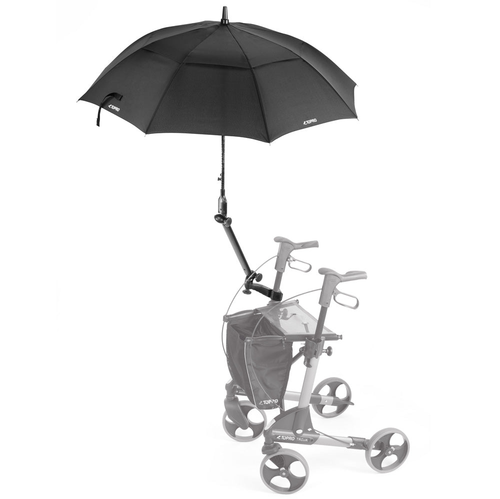 Der Rollatorschirm mit Multifunktionsarm schützt Sie bei Regen oder bietet Ihnen Schatten an heißen Sommertagen. Nutzen Sie den Rollatorschirm für alle Modelle von Topro. Befestigen Sie Ihren Regenschirm für den Rollator mit wenigen Handgriffen. Durch den Multifunktionsarm an Ihrem Rollatorschirm, stellen Sie die Position des Schirms individuell ein.
